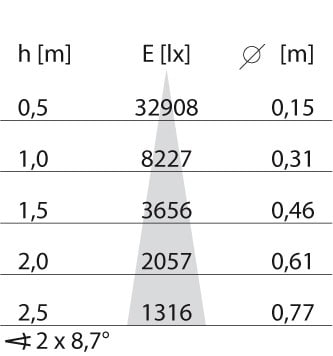 dépréciation flux lumineux, durée d'utilisation moyenne 100 000h, temp.25 °C: