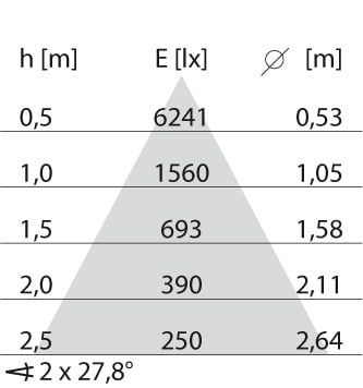 dépréciation flux lumineux, durée d'utilisation moyenne 35 000 h, temp.25 °C: