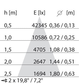 dépréciation flux lumineux, durée d'utilisation moyenne 35 000 h, temp.25 °C: