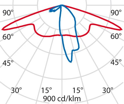 faible éblouissement selon EN 12464-1 (UGR Inf. à 19):