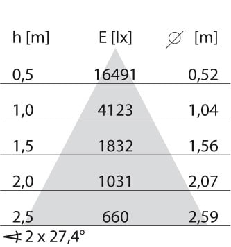 dépréciation flux lumineux, durée d'utilisation moyenne 35 000 h, temp.25 °C: