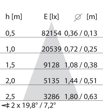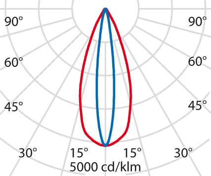 faible éblouissement selon EN 12464-1 (UGR Inf. à 19):
