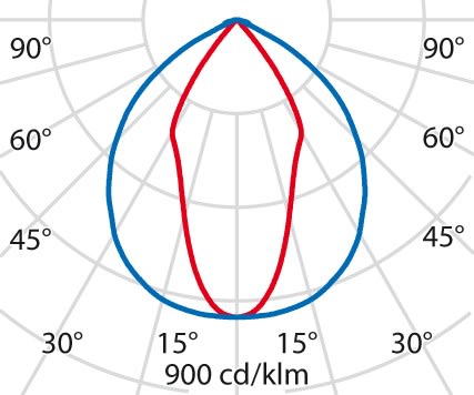 faible éblouissement selon EN 12464-1 (UGR Inf. à 19):