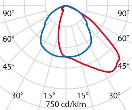 faible éblouissement selon EN 12464-1 (UGR Inf. à 19):