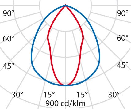 faible éblouissement selon EN 12464-1 (UGR Inf. à 19):