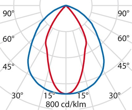 faible éblouissement selon EN 12464-1 (UGR Inf. à 19):