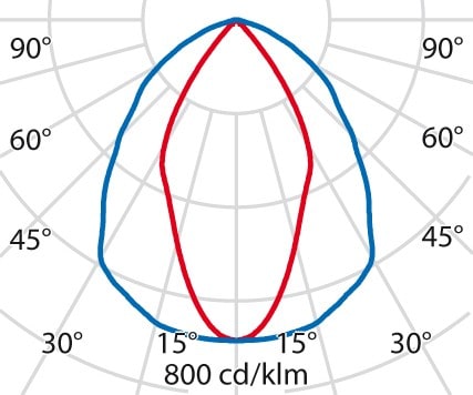faible éblouissement selon EN 12464-1 (UGR Inf. à 19):