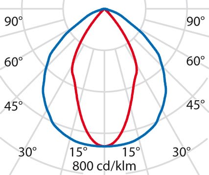faible éblouissement selon EN 12464-1 (UGR Inf. à 19):