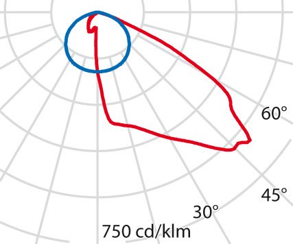 faible éblouissement selon EN 12464-1 (UGR Inf. à 19):
