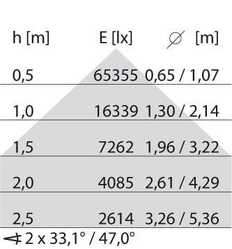 dépréciation flux lumineux, durée d'utilisation moyenne 35 000 h, temp.25 °C: