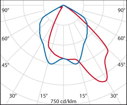 faible éblouissement selon EN 12464-1 (UGR Inf. à 19):