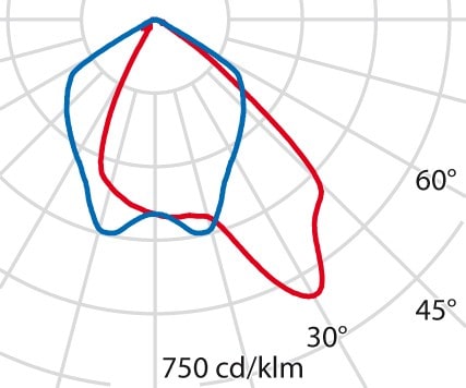 faible éblouissement selon EN 12464-1 (UGR Inf. à 19):
