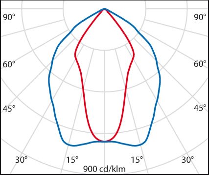 faible éblouissement selon EN 12464-1 (UGR Inf. à 19):