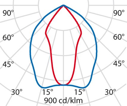 faible éblouissement selon EN 12464-1 (UGR Inf. à 19):