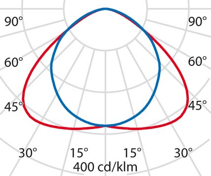 faible éblouissement selon EN 12464-1 (UGR Inf. à 19):