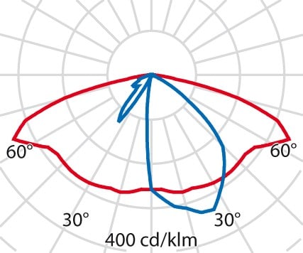 dépréciation flux lumineux, durée d'utilisation moyenne 100 000h, temp.25 °C: