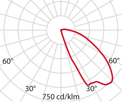 faible éblouissement selon EN 12464-1 (UGR Inf. à 19):