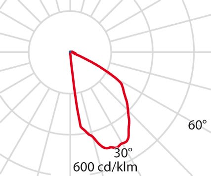 faible éblouissement selon EN 12464-1 (UGR Inf. à 19):