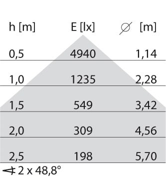 faible éblouissement selon EN 12464-1 (UGR Inf. à 19):