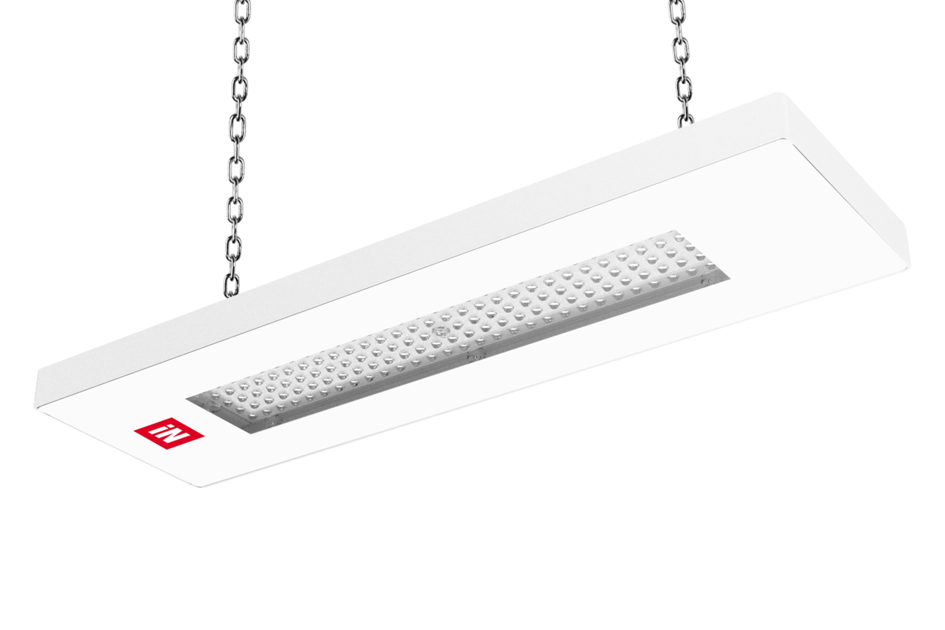 Suspension Led pour applications industrielles et sportives. Corps en aluminium moulé sous pression peint par poudre polyester;Diffuseur avec groupe optique intégré en technopolymère transparent stabilisé aux UV et à la chaleur. Branchemen