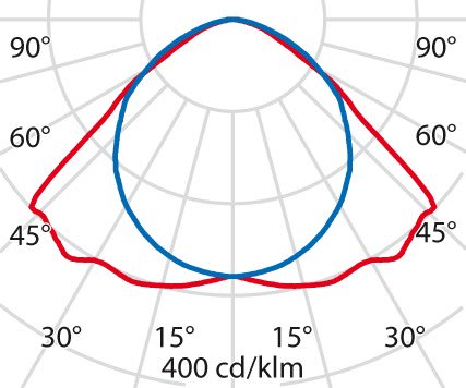faible éblouissement selon EN 12464-1 (UGR Inf. à 19):