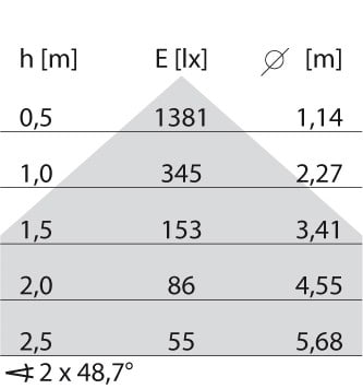 faible éblouissement selon EN 12464-1 (UGR Inf. à 19):