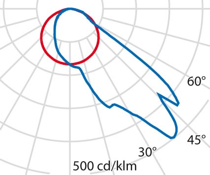 faible éblouissement selon EN 12464-1 (UGR Inf. à 19):