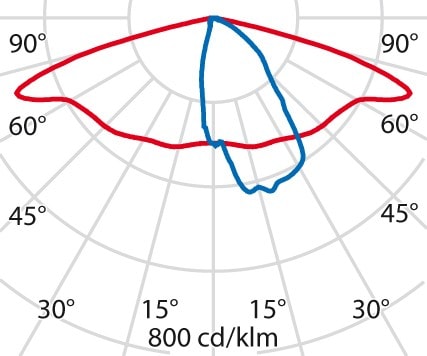 faible éblouissement selon EN 12464-1 (UGR Inf. à 19):