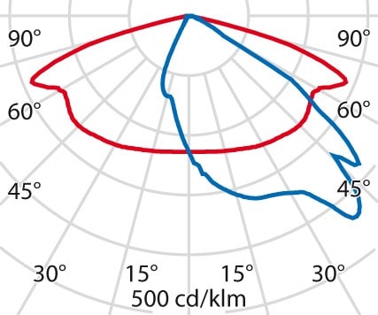 faible éblouissement selon EN 12464-1 (UGR Inf. à 19):