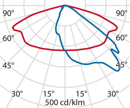 faible éblouissement selon EN 12464-1 (UGR Inf. à 19):