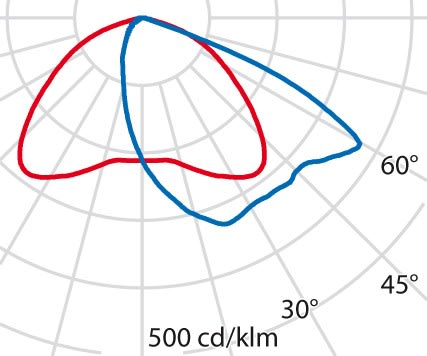 faible éblouissement selon EN 12464-1 (UGR Inf. à 19):