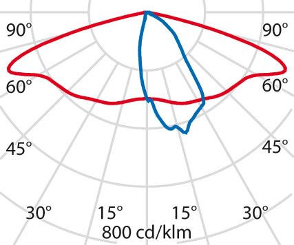 faible éblouissement selon EN 12464-1 (UGR Inf. à 19):