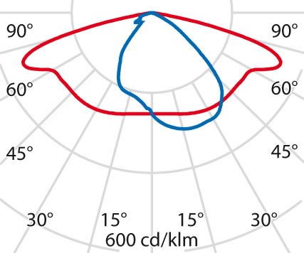faible éblouissement selon EN 12464-1 (UGR Inf. à 19):