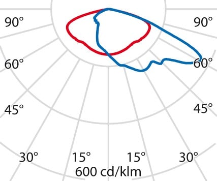faible éblouissement selon EN 12464-1 (UGR Inf. à 19):