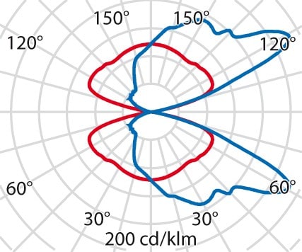 faible éblouissement selon EN 12464-1 (UGR Inf. à 19):