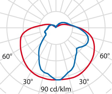 faible éblouissement selon EN 12464-1 (UGR Inf. à 19):