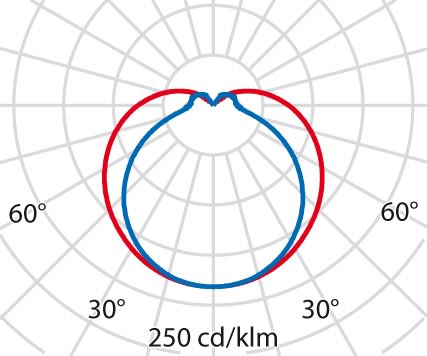 faible éblouissement selon EN 12464-1 (UGR Inf. à 19):