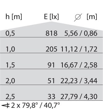 dépréciation flux lumineux, durée d'utilisation moyenne 35 000 h, temp.25 °C: