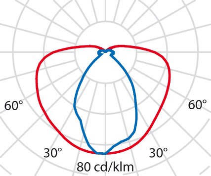 faible éblouissement selon EN 12464-1 (UGR Inf. à 19):