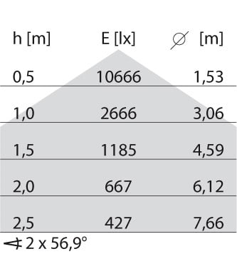faible éblouissement selon EN 12464-1 (UGR Inf. à 19):