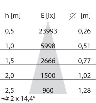faible éblouissement selon EN 12464-1 (UGR Inf. à 19):