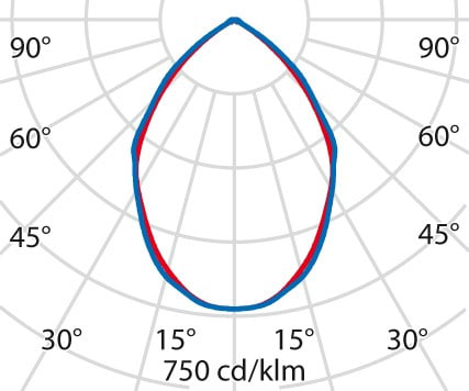 faible éblouissement selon EN 12464-1 (UGR Inf. à 19):