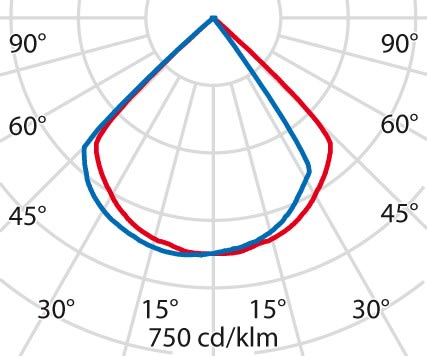 faible éblouissement selon EN 12464-1 (UGR Inf. à 19):