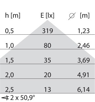 maintien du flux lumineux, durée moyenne utilisation 50 000h,temp. 25°C (tq):