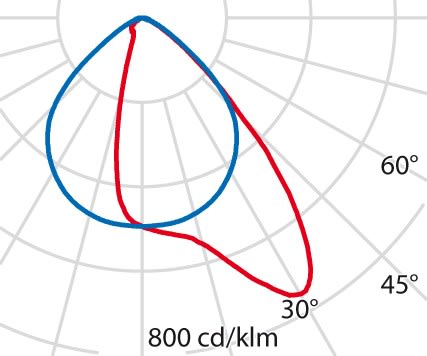 faible éblouissement selon EN 12464-1 (UGR Inf. à 19):