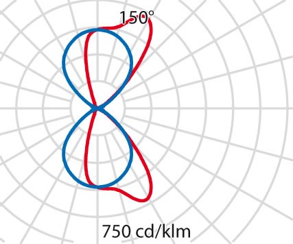 faible éblouissement selon EN 12464-1 (UGR Inf. à 19):
