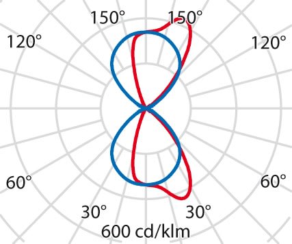 faible éblouissement selon EN 12464-1 (UGR Inf. à 19):