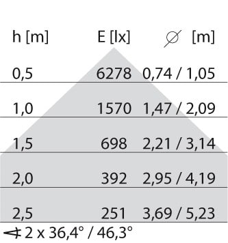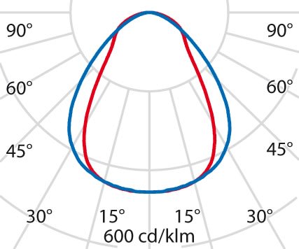 faible éblouissement selon EN 12464-1 (UGR Inf. à 19):