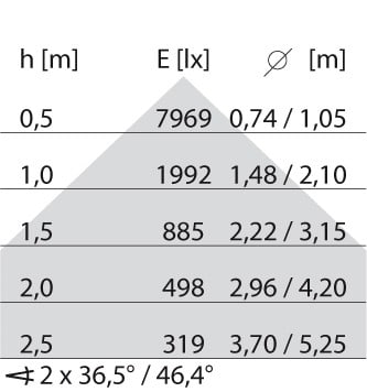 faible éblouissement selon EN 12464-1 (UGR Inf. à 19):