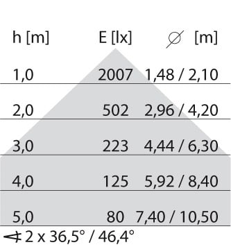 dépréciation flux lumineux, durée d'utilisation moyenne 35 000 h, temp.25 °C: